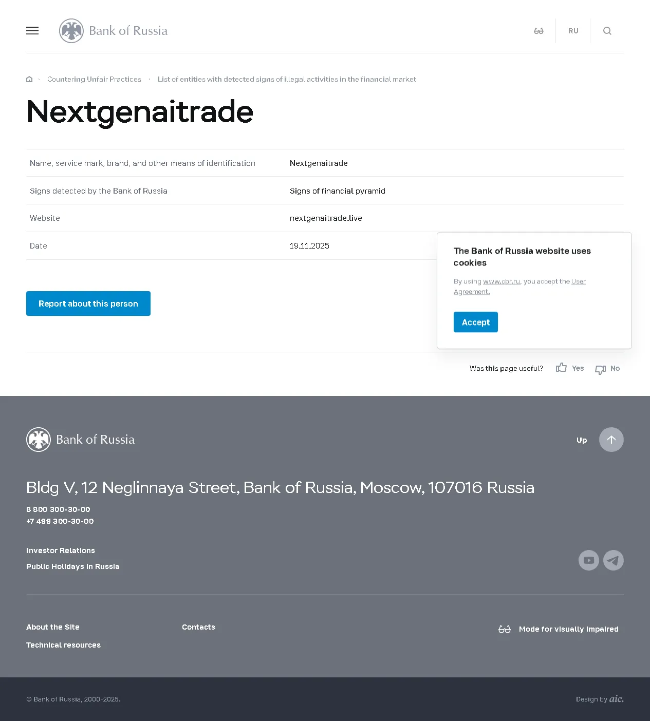 Daftar entitas dengan tanda-tanda terdeteksi kegiatan ilegal di pasar keuangan Nextgenaitrade.
