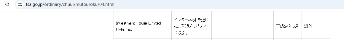 Entitas yang Melakukan Usaha Perdagangan Produk Keuangan Tanpa Pendaftaran-Investment House Limited (iHForex).