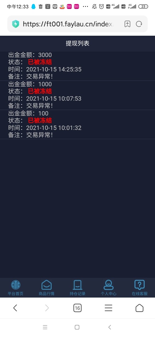 假冒富拓骗钱,骗子用一个假的网站https://ft001.faylau.cn/h5/#/,冒充真的,还有骗子骗你入金,一直让你往里面投了,带你买跌,然后有一个假的虚拟盈利的钱,最后钱根本提现不出来