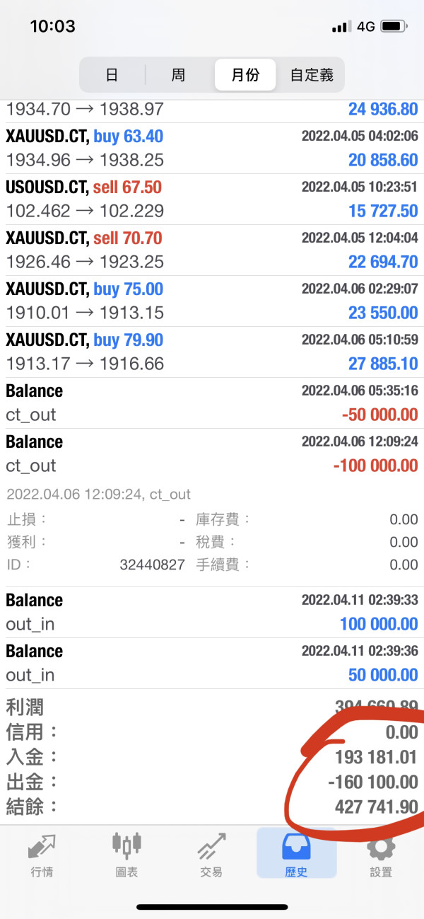 經Line認識助理並説有老師帶操石油黃金期貨,下載MT4,告知收益率高,不疑有詐,起初少量資金跟操作盈利不錯,助理又鼓勵再放多資金利益更高,故共放120萬台幣曾出金11000美金,不到一個月時間最後本金加利潤427741.91美金,本人將在4/6出金5萬元美金但告知要先缴稅20%才行出金,覺有詐才未入金,但先前已入金120萬台幣扣出金還有90萬台幣 曾在一星期曝料過案號FX2007642900,未接任何訊息故再次投報,謝謝🙏 懇請幫忙處理,不甚感激!