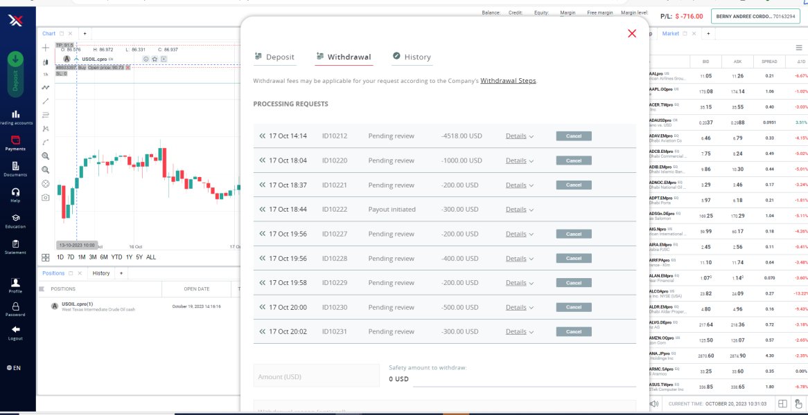 Todo comenzó el 17 de octubre del 2023 cuando después de algunas charlas sobre cómo usar la plataforma, el Broker "Lucas Monfort" que considero un nombre ficticio, me "guió" con el proceso para trabajar la plataforma y generar ganancias. Después de hablar, logró persuadirme de que si depositaba una suma de 3000 dólares me recompensarían con 2000 dólares, ingresé 3740 dólares para operar y efectivamente el mercado incremento exponencialmente y asi genere una suma de 7700 dolares. Al dia siguiente el 18 de Octubre del 2023 la persona Lucas Monfort me llamaba de diferentes numeros cada minuto y me escribia por la aplicacion de Telegram, me decia que cancelara las ganacias para seguir invirtiendo y fue en ese momento donde comence a leer experiencias de personas que una vez trabajados generaban una ganancia de 7700 dólares, en ese preciso momento comencé a leer varias reseñas de personas que habían perdido todo el dinero con ellos asi que me negue a acceder a la cancelacion. Me llamaba todos los dias para que lo hiciera y no lo hice. El dia jueves me depositaron 300 dolares con el fin de que liberara mis ganancias, sin embargo no lo hice tampoco, cabe recalcar que desde el martes 17 de octubre mis cuentas aparecian con el retiro pendiente. Lo que sucedio despues, fue que el dia de ayer lunes 23 de octubre, me dijo que operaramos con un bono que se me habia aprobado, accedi para trabajar ese dinero y pense que tal vez asi podian sacar las ganacias de ellos y me iban a liberar mi dinero mas rapido, sin embargo, minutos despues, mi cuenta estaba en negativo, tenia una deuda de -1200 dolares donde me decian que tenia que depositar de mis tarjetas un monto de 1200 para compensar esa perdida. No lo hice, por lo que me enviaron un correo diciendome que mi cuenta habia sido completada, ingrese y estaba todo en cero, y minutos despues me enviaron otro correo CANCELANDOME MIS RETIROS por "Balance insuficiente". Comence a enviar correos para solicitar mi dinero, envie un correo a la Financial Sector Conduct Authority en Sudafrica, ya que son la superintendecia del pais, quejandome del caso, sin embargo no he recibido respuesta alguna. Temo perder este dinero ya que fue de una tarjeta de credito, cuando no tenia este dinero en cuenta y asi de la nada perdi todo. El Broker Lucas Monfort me llama y me envia mensajes que invierta mas para recuperar ese dinero "perdido" cuando eso facilmente fue una ESTAFA. Estas personas no son profesionales, solo les importa robar tu dinero, el sistema dice que tardan 3 dias en depositar, sin embargo este es el ejemplo donde vemos que no es cierto...Espero que me puedan ayudar pronto, necesito recuperar mi dinero.