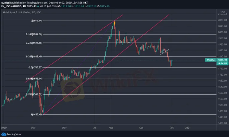 WikiFX Notizie (5 dicembre) - Questa settimana, il prezzo dell'oro è rimbalzato bruscamente sopra $ 1.800, perché il mercato stava scommettendo che gli Stati Uniti avrebbero introdotto un piano di stimolo economico. La propensione al rischio di mercato è negativa per l'oro a medio termine, ma a lungo termine è ancora rialzista.