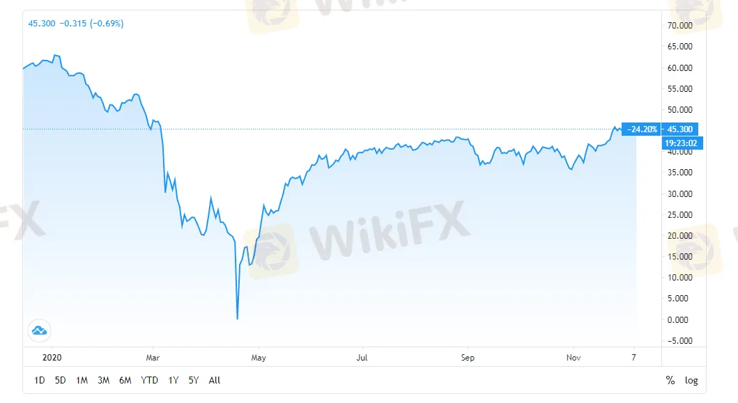 WikiFX Notizie (8 dicembre) - Lunedì, il greggio WTI ha chiuso in ribasso dello 0,78%, è tornato al consolidamento sotto il 46,0 registrando due giorni consecutivi di calo. I prezzi del petrolio risentono delle incertezze del mercato e dovranno affrontare dei test a breve termine.
