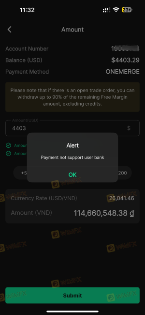 フロア苦情 少額の入金時には、プラットフォームは投資家との信頼を築くために数回の出金を許可しています。しかし、多額の入金時には、資産の横領の兆候が見られます。2023年4月13日に4,230 USDTを入金したところ、プラットフォームは出金を許可する前に追加の入金を要求しました。2023年4月17日に5,960 USDTを入金し、合計10,190 USDTとなりましたが、取引や資金の引き出しができませんでした。彼らは個人情報を確認するため、さらに9,375 USDTの入金を要求しました。その後、2023年4月27日に2回の入金を行いました:最初は1,405 USDT、次は5,000 USDTです。彼らはさらに2,970 USDTの入金を要求しましたが、私は行いませんでした。4回の取引での合計入金額は16,595 USDTに達しました。私は取引や資金の引き出しができません プラットフォーム。現在のところ、稼働していません。