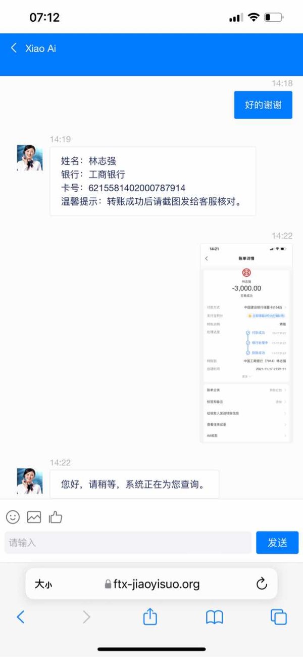 这个网站就是个骗局,ftx-jiaoyisuo.org 第一步 男的陌生人 帅哥通过社交软件获取猎物,找美女聊天 然后说自己经验玉石生意 离异单身没有小孩 经常找你聊天问好 说自己是爱好喝茶 健身 敬业多金的人设 后来问微信或者WhatsApp , 再后来借口微信被封 绝大多数内容通过海外社交软件WhatsApp进行 第二步经常告诉你炒外汇交易回报高 很容易赚钱 . 第三步教你注册外汇网站教你入金,网址是ftx-jiaoyisuo.org ,叫我联系客服充值 ,像私人账号汇款 ,他的目标是让你赚一点点 然后叫你多放点钱,赚的更多。 第四步说会员有入金送礼金的活动 ,你充值完了之后种种借口不让你提现 骗子的手段无所不用其极,而且每笔交易都汇入私人帐号 无数次汇款就是无底洞 汇款到私人户口 去网站搜索的时候 发现 这个网站是 个骗局。问那个男的 就不回 直接拉黑,根本联系不 上。到那个网站也一样 根本联系不上把你拉黑。而且这个骗子盗用网红博主的图片 对话图片不是本人而且是南方人口音 自称江西九江人 后面图片是盗用博主的照片