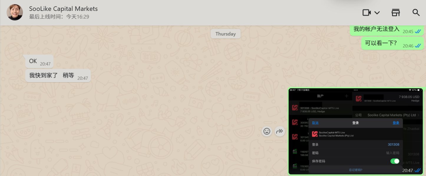 1. 2025-07-17 20:45 发现无法登入Soolike 帐户, 疑似 遭 断网 入侵 2. 2025.07.17 15:43:05 “调仓点数” = 30 点, 没有到达 四百点 调仓门槛,即 启动调仓 参考 0707 sheet 正常调仓记录 3. 2025.07.17 15:43:05 当时 黄金行情 约 3316, 却在 3327.81 价位成交多单。 明显滑点 滑点补偿机制 责任判定:若滑点因经纪商系统故障或流动性不足导致,可申请差价补偿或交易积分返还 监管投诉:如与经纪商协商未果,可向FCA、CFTC等监管机构投诉 4. 2025.07.17 15:44:21 之后 三笔订单 全部盈利 112 ~ 219 》20, 與 EA參數 明显不符 由第二,第四点 可以发现 “明显人为操作痕迹" 。因與 所用 EA參數 明显不符 EA 參數 如下 经向 Sooike 客服反映,却推说是 EA 失真问题。 完全無法回答上述 账户疑似 遭入侵操作 之 证据。 SooLike Capital Markets 联系人信息 alex.elia@soolike.com https://www.soolike.com