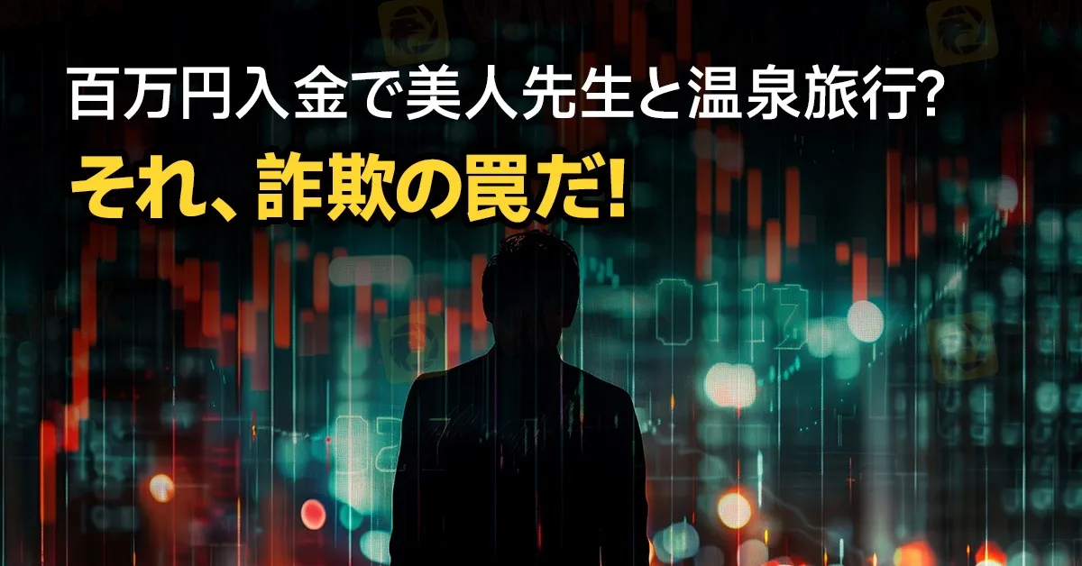今回の詐欺では「美人先生と温泉旅行」という手口で騙されましたが、「入金すれば先生と対面ゼミナー」「○○ヶ月後にパーティーに参加」などの甘い誘いには一切乗らないようにしましょう。