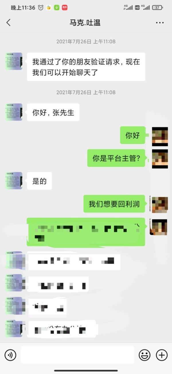 接着去年7.14号的帖子 , 盈利不给出金 , 想尽办法拖住客户 。去年帖子发出后 。 公司派了个姓刘的管公司管运营的 ,一直说跟我沟通 ,一直沟通到今年的现在, 期间有谈成一些条件,我们已经让步了拿盈利的60%,以为谈好了,其实他们就是不想给钱。总有原因一会说公司老板不在 ,一会说风控不在,过段时间又说老板被隔离,反正各种理由,完全没有给客户盈利资金的意思,其目的就是拖住你,下面上传我跟他一部分的聊天记录 只是一小部分 从去年7月聊到今年的4月 总之这个平台就是垃圾平台 ! 盈利至今没拿到! 附上一些跟自称运营的sb的聊天记录 还有很多 只发一部分