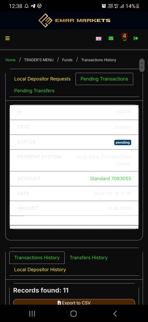 I have a problem with the deposit not being included in my trader's acc.. the platform is very disappointing..