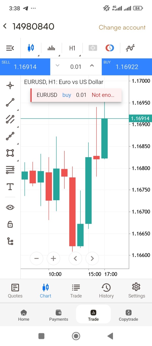 이건 완전한 사기예요. Headway에서 거래하다가 돈을 잃었고, 1.16914에서 1.16625로 떨어져서 잔고가 2.8밖에 안 남았어요.