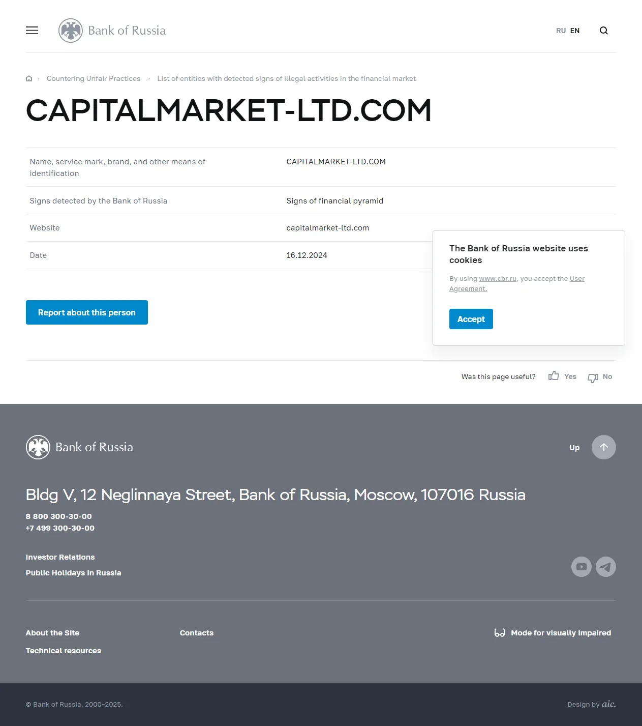 금융 시장에서 불법 활동 징후가 감지된 기업 목록 CAPITALMARKET-LTD.COM.