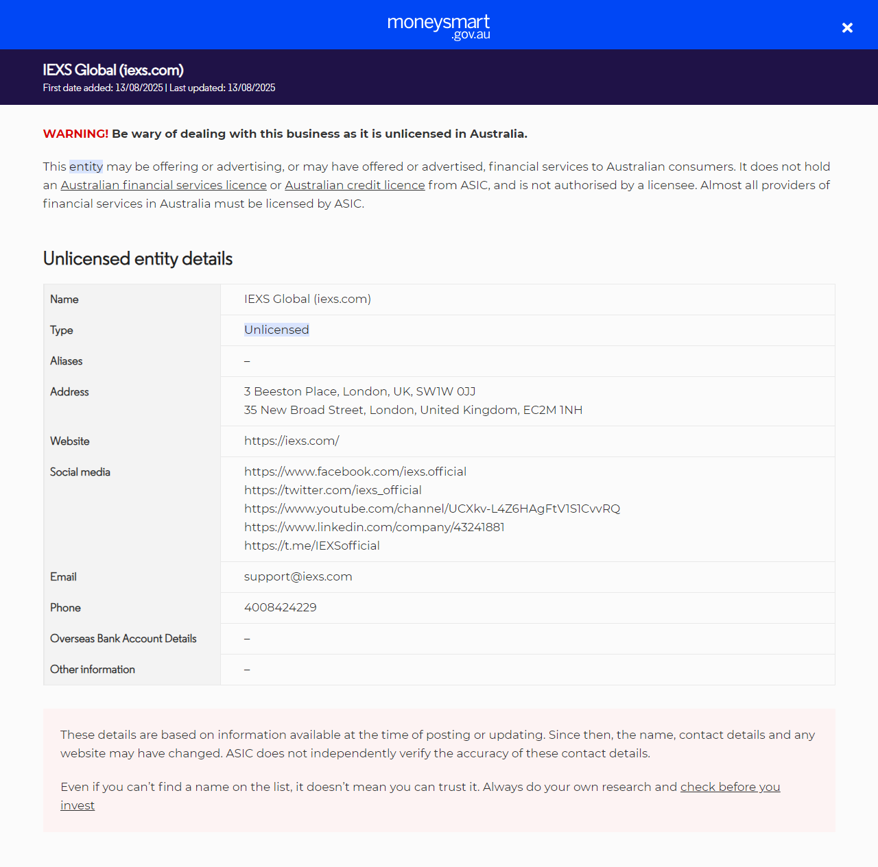 투자자 경고 목록IEXS 글로벌 (iexs.com).
