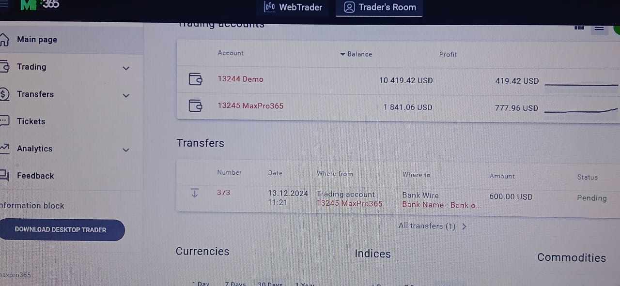 Called me from Max Pro 365 or made me invest 500 dollars on the pretext of teaching me trading, called a person named Hare Krishna as a trading expert or forced me to invest 5000 dollars, kept trading for 10 to 12 days or showed profit but kept withdrawing. They talked about doing a big A/C but I started processing the withdrawal on 13/12/24. I am seeing that there is a withdrawal of 3 to 4 hours in the account or there is a movement band in the next day trading. Krishna is present in all the recordings. No one has called since this morning. Please refund my money.