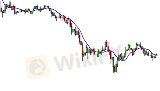 Как видите, скользящая средняя выглядит как волнистая линия, наложенная поверх цены (представлена японскими свечами).