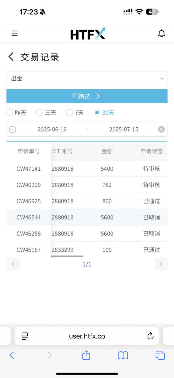 有几笔出金审核通过一直未到账,还有几笔出金一直未审核,以前不是当天提交出金请求,当天到账吗?贵公司是不是没有资金,如果有,请尽快完成出金问题。 审核通过未到账申请单号如下: IW20288,金额:424 IW20241,金额:491 审核一直未处理通过申请单号如下 IW20324,金额:191 CW46999,金额:782 CW47141,金额:5400 请求尽快处理。