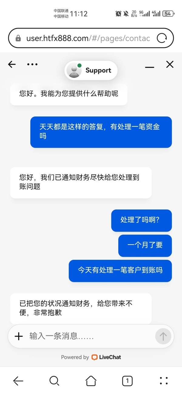 出金一个月了一直不到账!客服一直推脱在处理,实际情况从没到过