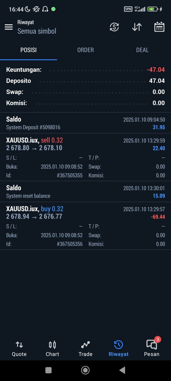 I am very disappointed with this broker's service. I experienced a very unreasonable difference in order closing prices. I closed the Buy position at the price of 2677.11, but the broker actually closed it at the price of 2676.77, even though market conditions at that time were stable without significant fluctuations. This caused my balance to decrease unfairly to the point of experiencing losses. When I submitted a complaint and included evidence, my complaint was ignored and only given general reasons such as slippage, without any attempt to explain or prove the matter in detail. As a broker that claims to use a Market Execution system, transparency and accuracy in price execution are very important. However, this experience shows indications of practices that are detrimental to customers. I do not recommend this broker to anyone. If you prioritize honesty and transparency, you should look for another broker who is more trustworthy.