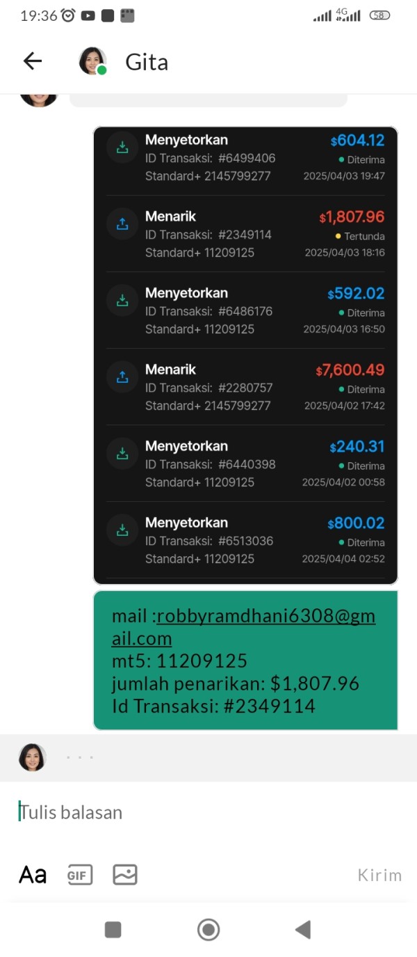 saya melakukan penarikan di broker iux ini, namun sudah 4 hari status masih saja tertunda. saya sudah menghungungi live chat dan support setiap hari. namun yang mereka katakan selalu sama, disuruh menunggu selama 24 jam , namun sampai sekarang sudah 4 hari lebih penarikan masih saja belum berubah statusnya masih tertunda, ?!!