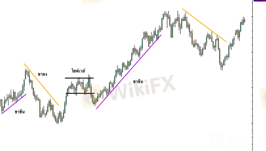 เมื่อร้อยเข้าด้วยกันด้วยเส้น เราจะเห็นการเคลื่อนไหวของราคาทั่วไปของคู่สกุลเงินในช่วงเวลาหนึ่ง