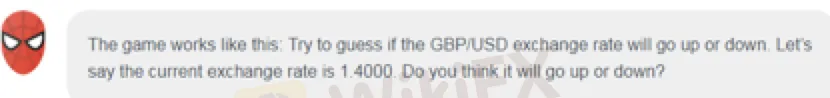 เกมทำงานดังนี้: ลองเดาว่าอัตราแลกเปลี่ยน GBP/USD จะเพิ่มขึ้นหรือลดลง สมมติว่าอัตราแลกเปลี่ยนปัจจุบันคือ 1.4000 คุณคิดว่ามันจะขึ้นหรือลง?