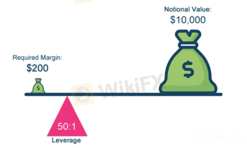 Leverageคือ 50 ซึ่งแสดงเป็นอัตราส่วน 50:1
