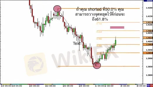 หากคุณได้ short ที่ 50.0% คุณสามารถวางคำสั่งหยุดการขาดทุนของคุณผ่านระดับ Fib 61.8%