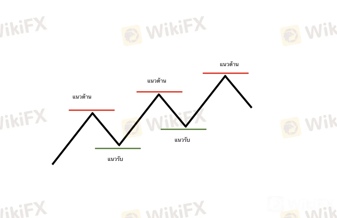 ด้วยวิธีนี้ แนวต้านและแนวรับจะเกิดขึ้นอย่างต่อเนื่องเมื่อราคาขยับขึ้นและลงเมื่อเวลาผ่านไป