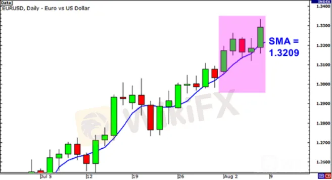 สมมติว่าเราพล็อต SMA 5 งวดในกราฟรายวันของ EUR/USD