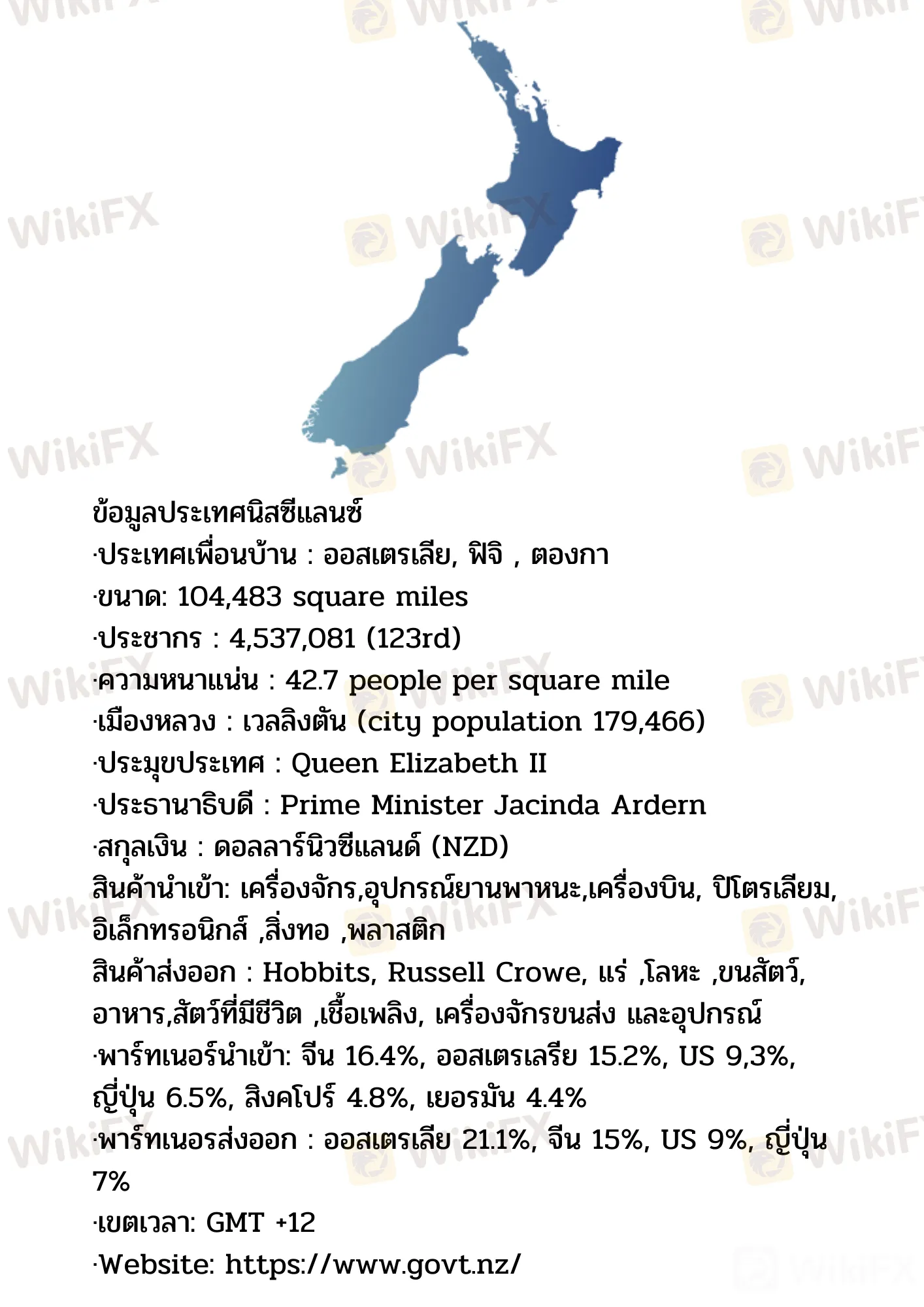 · ประธานาธิบดี : Prime Minister Jacinda Ardern