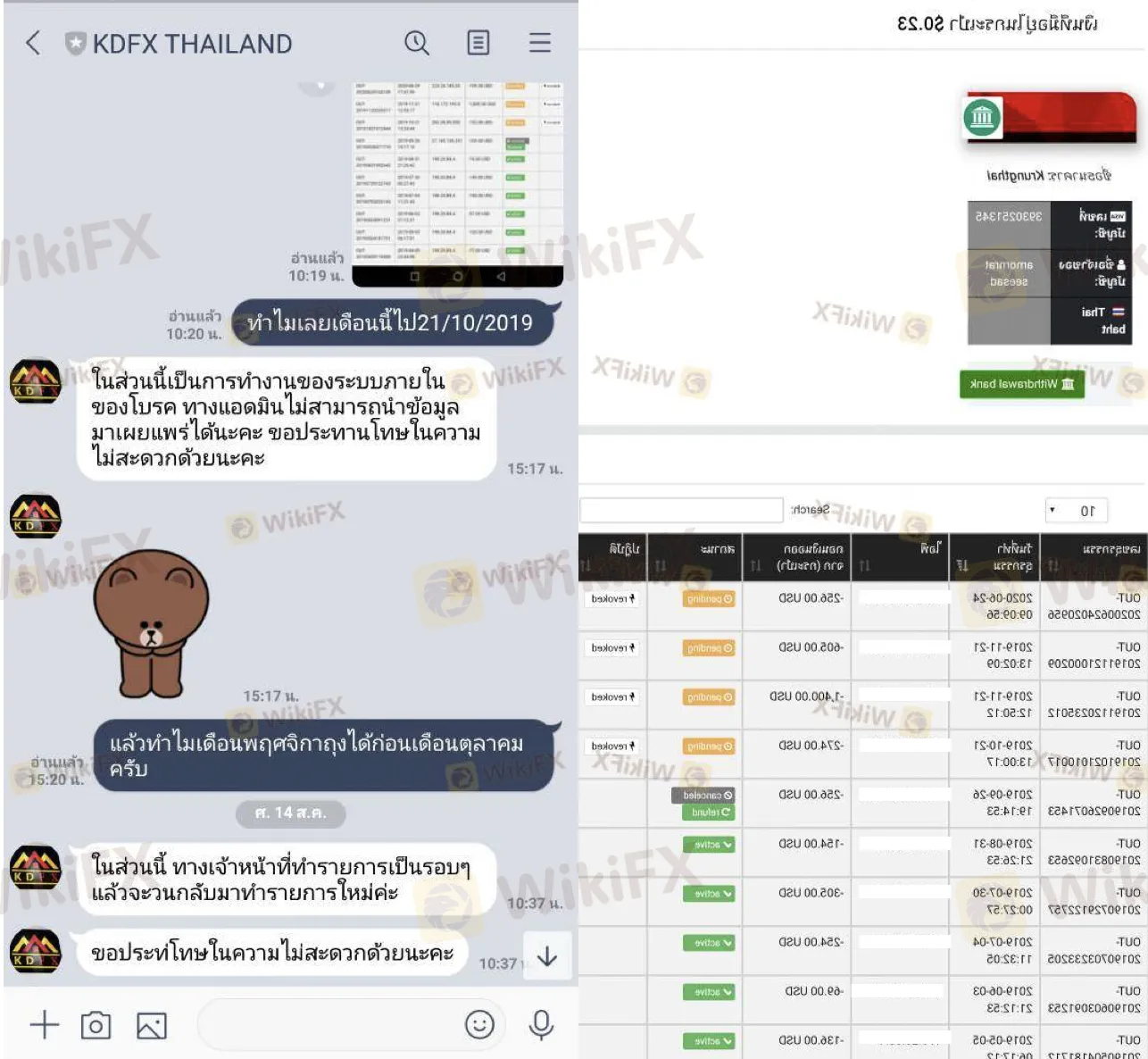 เมื่อวันที่ 3 กันยายน 63 ที่ผ่านมามีนักลงทุนรายหนึ่งได้มาร้องเรียนกับทางแอปพลิเคชัน WikiFX ว่าตนได้ดำเนินเรื่องขอถอนเงินกับทางโบรกเกอร์ KDFX ไปตั้งแต่วันที่ 21/10/2019 จนถึงปัจจุบันนี้ยังไม่มีวี่แววที่จะได้รับเงินแต่อย่างใด ถึงแม้จะติดต่อทาง Support ไปก็มีแต่อ้างว่า เป็นเรื่องของทางภายในจัดการ ไม่สามารถชี้แจงรายละเอียดได้