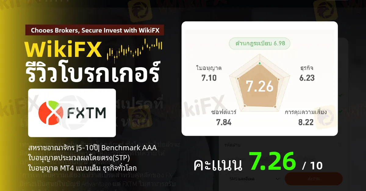 โดยสรุป โบรกเกอร์ FXTM มีคะแนนประเมินบน WikiFX อยู่ที่ 7.26 /10 อย่างไรโปรดใช้วิจารณญาณในการตัดสินใจ และระวังความเสี่ยงที่อาจจะเกิดขึ้น อ่านข้อมูลเพิ่มเติมเกี่ยวกับโบรกเกอร์คลิก https://www.wikifx.com/th/dealer/3351410785.html
