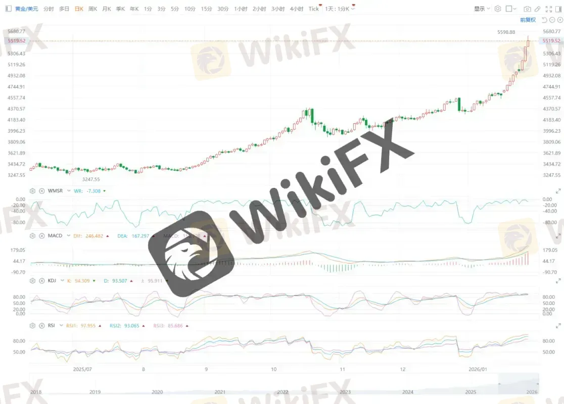 บทคัดย่อ:ภาพรวมตลาดจากการติดตามของ ETO Markets เมื่อวันที่ 28 มกราคม (พุธ) ราคาทองคำ Spot พุ่งแรง 4.5% ปิดที่ 5,414.87 ดอลลาร์ต่อออนซ์ หลังจากระหว่างวันทำสถิติสูงสุดใหม่ที่ 5,418.67 ดอลลาร์การปรับขึ้นอย่างร้อน