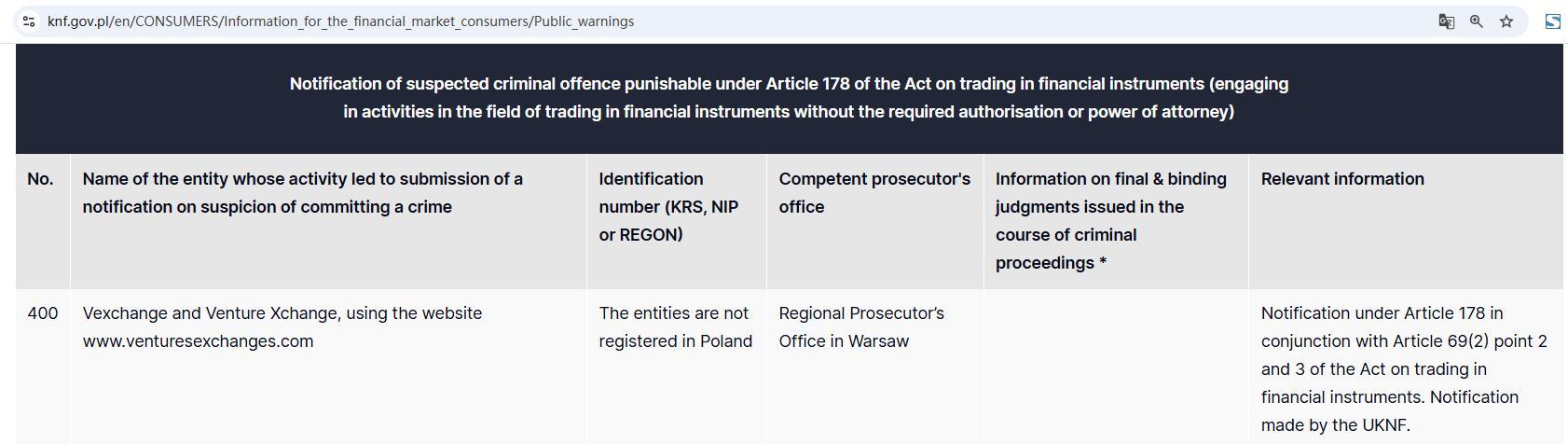 รายการคำเตือนสาธารณะของ KNF.