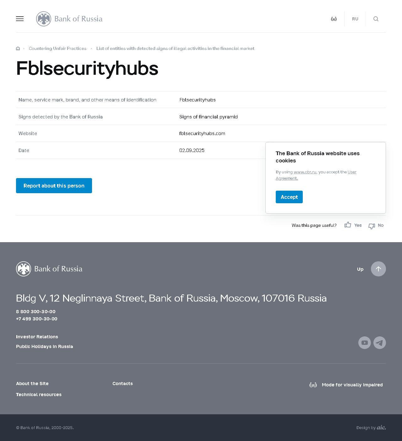 รายชื่อหน่วยงานที่มีสัญญาณของการกระทำผิดกฎหมายในตลาดการเงิน Fblsecurityhubs.