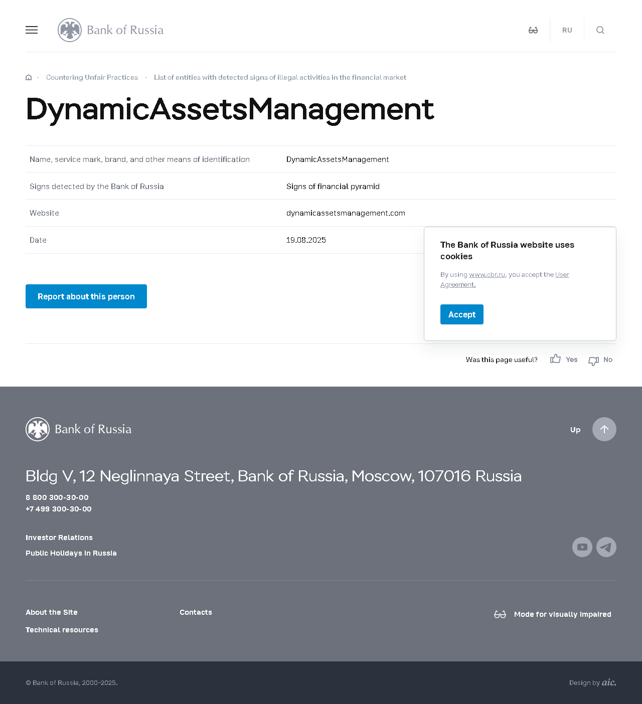 รายชื่อองค์กรที่มีสัญญาณของการกระทำผิดกฎหมายในตลาดการเงิน DynamicAssetsManagement.