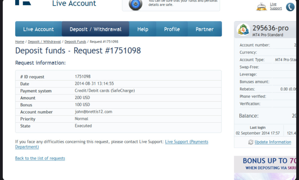 I deposited 200$ in my account and payment was successful, After that my credit card got some security issue and it is now in bank custody So i excuted some trades and put withraw in my Skrill account but support said to me Please process your Passport verification i successfully passed it Then they said please process Address verification also so i did, After that i put withdraw again but once again declined and they said please process a screen short of your Skrill where it shows your name and address so i did and they verified it Then once again i put a withdraw request and after taking all my documents and skrill account screen shorts they again reject my withdraw and their support not giving me any reply so now tell me what i do now if it is not scam