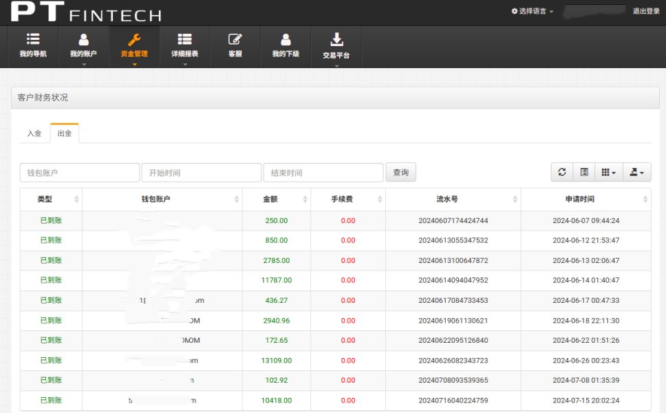 我身为一名外汇代理 也代理过很多品牌 该说不说PTfintech的出入金是很顺畅的 代理这个平台也快两年了 交易环境适合自己做交易的朋友合作条件灵活