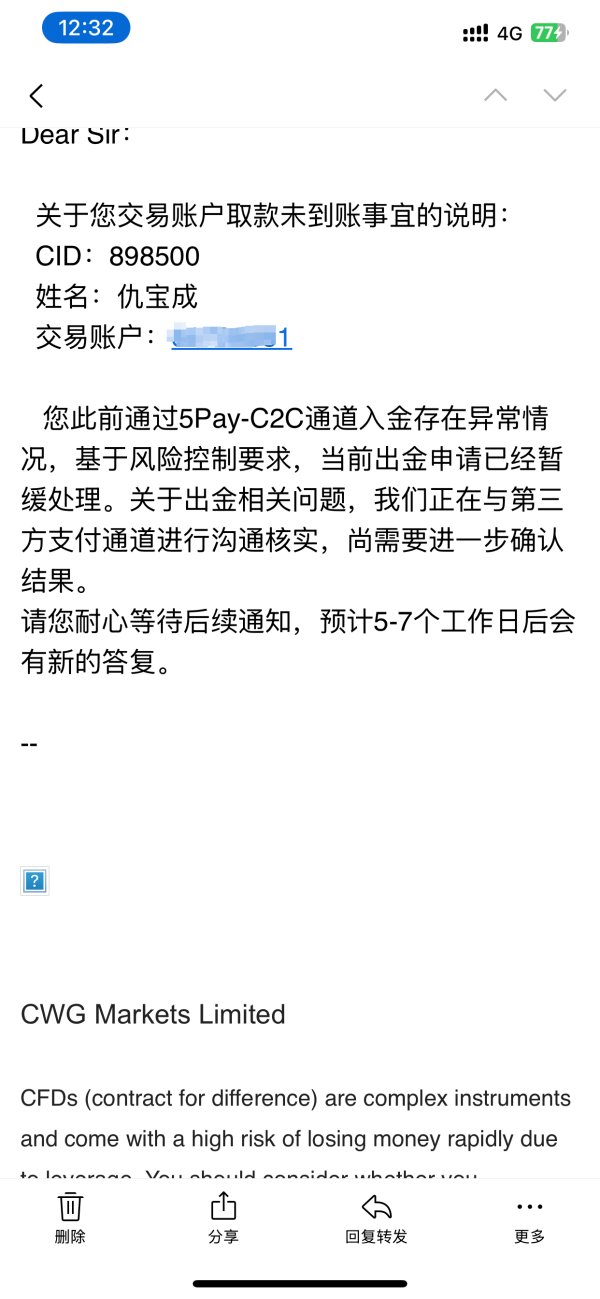 入1万金好好的,做了两三个月,现在我出本金跟我说我入金时候支付通道异常,卡我出金20天中间就发了一封邮件,哦我入金时候交易的时候怎么没异常,怎么我出金就异常了?我要的还是本金真恶心