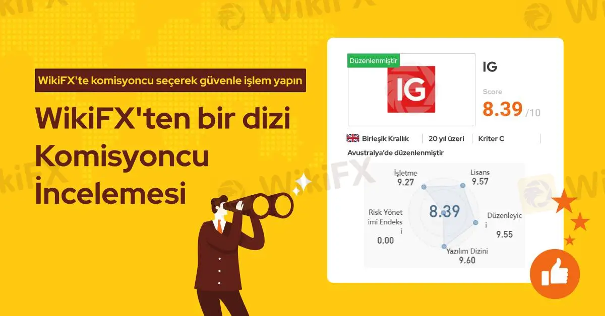 IG resmi lisans sahibi bir forex komisyoncusudur ve WikiFX araştırmalarına göre bu firmanın lisansı geçerlidir. Ancak bu firmayla ilgili olarak son 3 ayda 15 farklı şikayet WikiFX yetkililerine ulaşmıştır. Bundan dolayı WikiFX bu komisyoncuya 8.39/10 gibi orta seviye bir puan vermiştir.