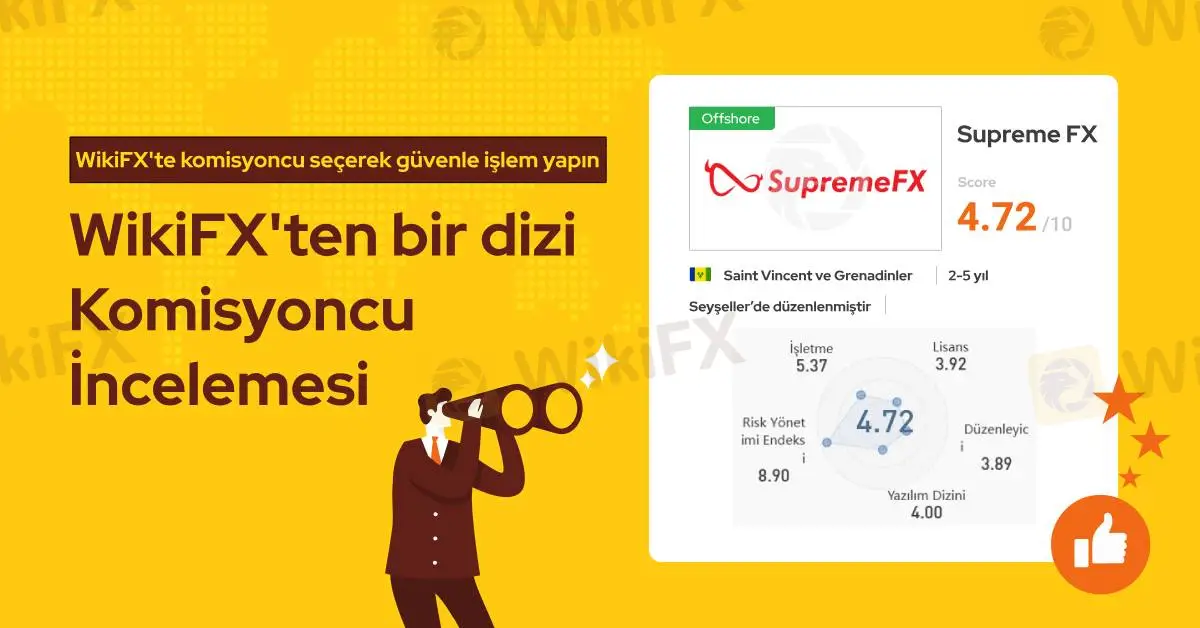 SupremeFX resmi lisans sahibi bir forex komisyoncusudur ve WikiFX araştırmalarına göre bu firmanın lisansı geçerlidir. Ancak bu firmayla ilgili olarak son 3 ayda 18 farklı şikayet WikiFX yetkililerine ulaşmıştır. Bundan dolayı WikiFX bu komisyoncuya 4.71/10 gibi orta seviye bir puan vermiştir.