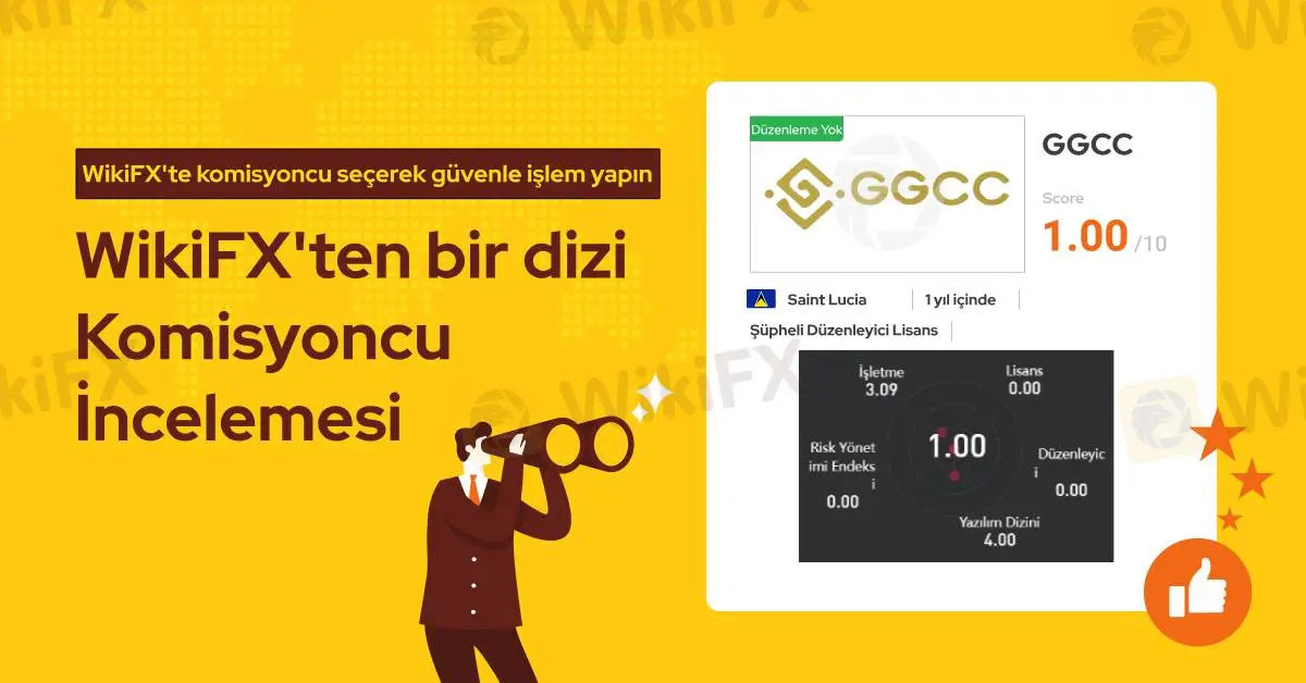 GGCC resmi lisans sahibi bir forex komisyoncusu değildir ve WikiFX araştırmalarına göre bu firmanın lisansı geçerli değildir. Ayrıca bu firmayla ilgili olarak son 3 ayda 31 farklı şikayet WikiFX yetkililerine ulaşmıştır. Bundan dolayı WikiFX bu komisyoncuya 1.00/10 gibi düşük seviye bir puan vermiştir.