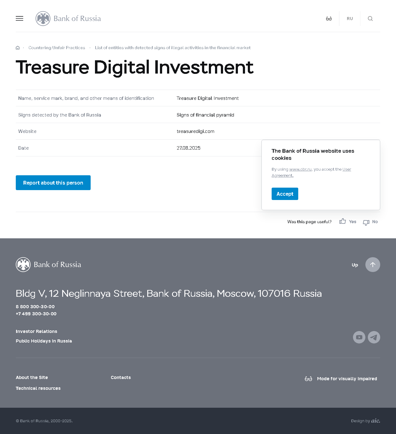 Finans piyasasında yasa dışı faaliyet belirtileri tespit edilen varlıkların listesi Treasure Digital Investment.