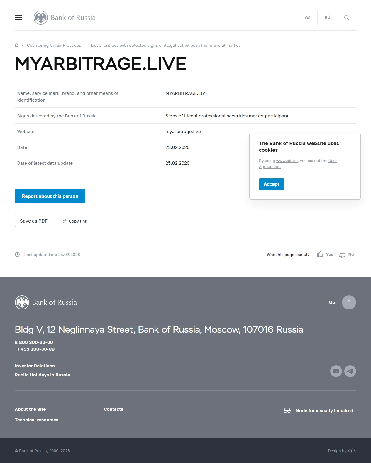 Finansal piyasada yasadışı faaliyet belirtileri tespit edilen kuruluşların listesi MYARBITRAGE.LIVE.