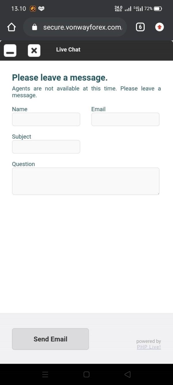 If it was this kind of fraud, I tried to withdraw $50 into my account, but it took a long time. In the case that the customer service is not working properly, a message was sent to e-mail to seek support, VonWay Group did not reply at all.