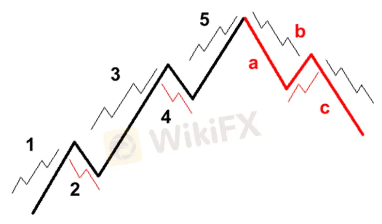 Bạn có thấy Sóng 1, 3 và 5 đề được tạo thành từ một impulse pattern (mô hình sóng động lực) 5-sóng nhỏ hơn, trong khi Sóng 2 và 4 được tạo thành từ một corrective pattern (mô hình sóng điều chỉnh) 3-sóng nhỏ hơn không?
