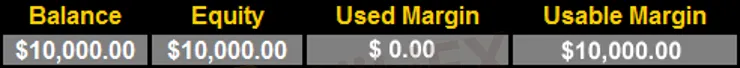 Bạn cũng sẽ thấy rằng “ký quỹ đã sử dụng” là 0.00 đô la và “ ký quỹ có thể sử dụng” là 10,000 đô la, như hình bên dưới: