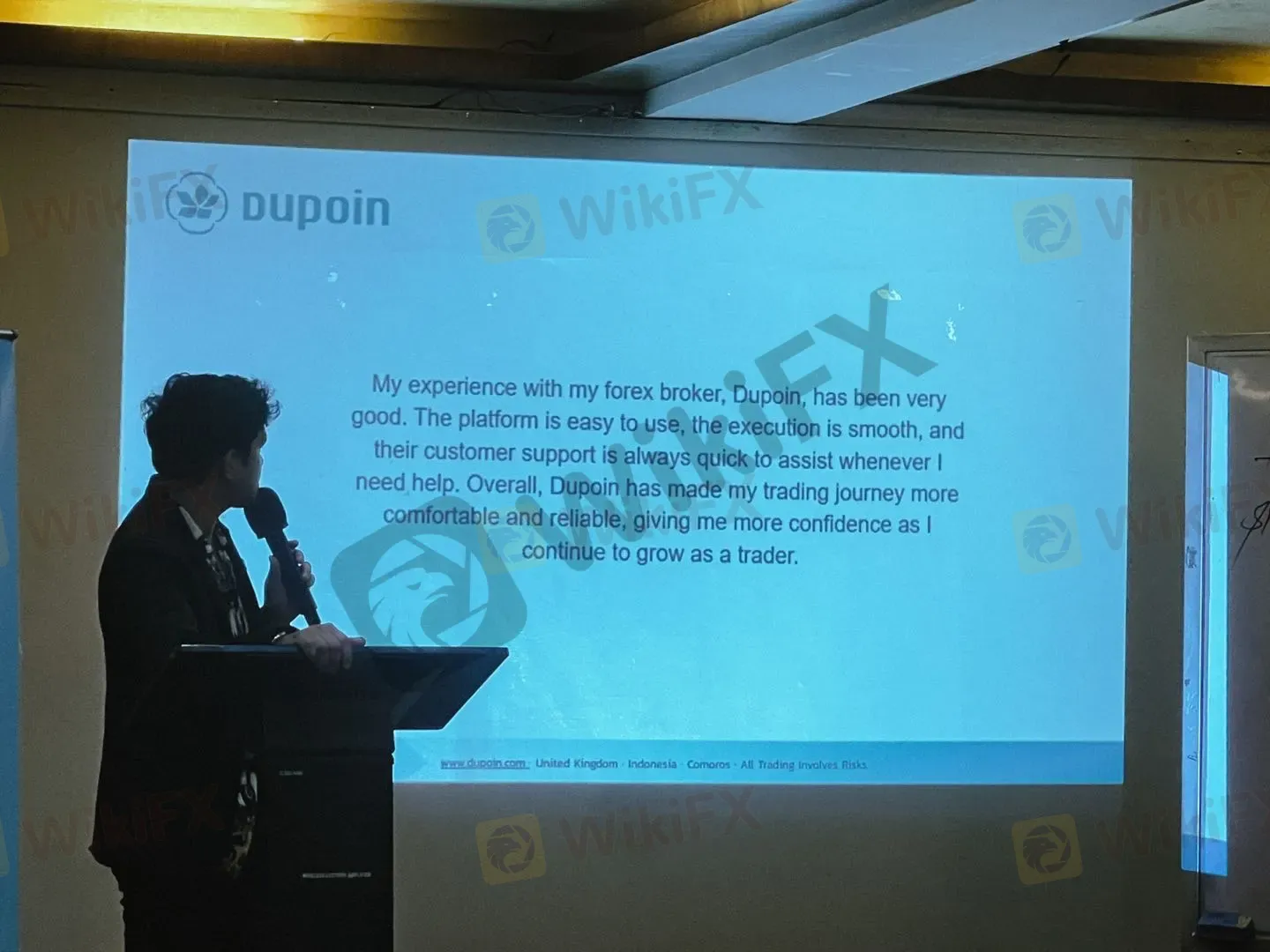 Chương trình cũng ghi nhận phần trình bày toàn diện từ đội ngũ Marketing của Dupoin, do Ryan Daigo đại diện. Ông Daigo nhấn mạnh cam kết của Dupoin trong việc xây dựng một môi trường giao dịch an toàn, được quản lý chặt chẽ và ứng dụng công nghệ tiên tiến.