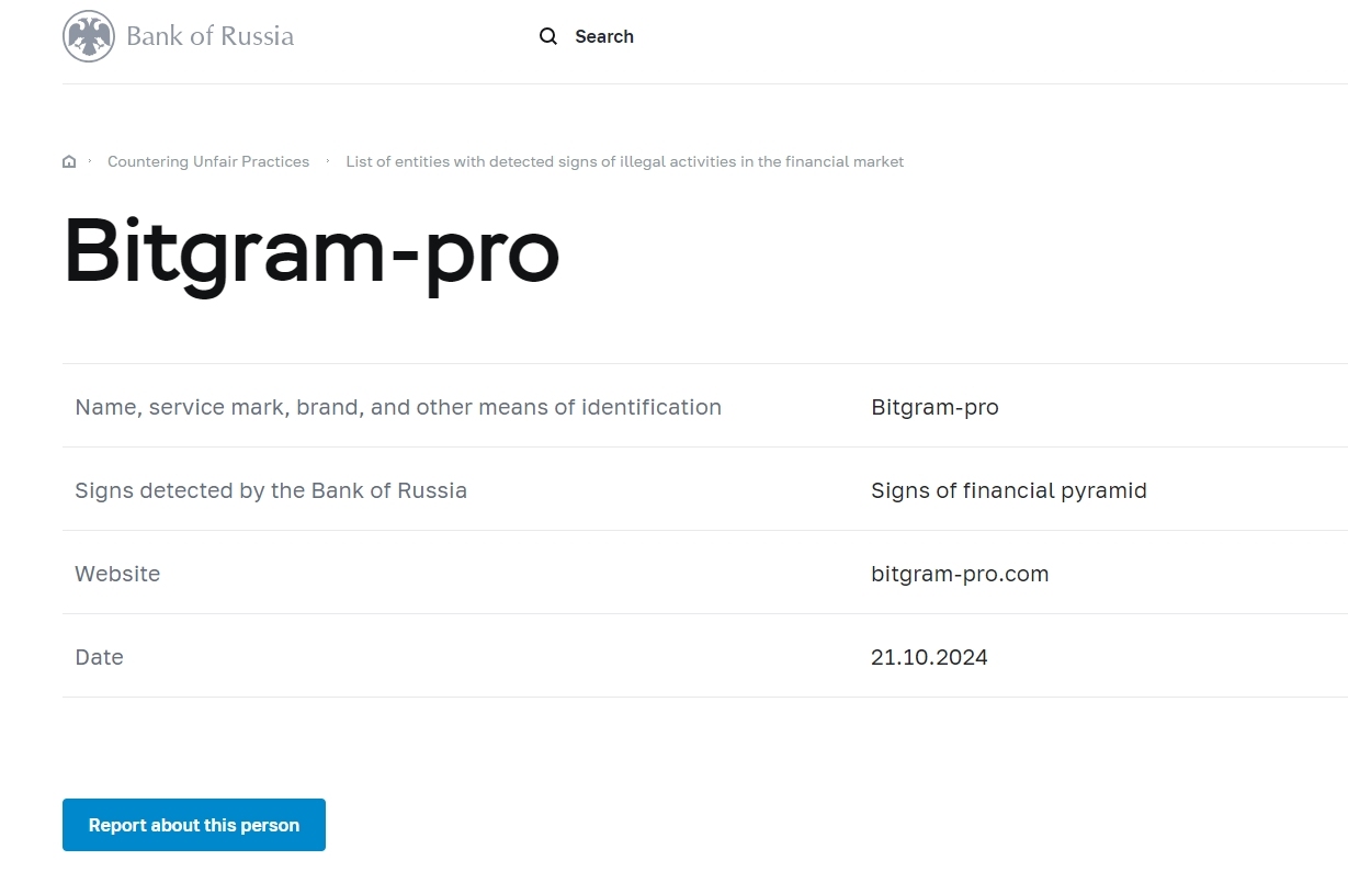 Danh sách các thực thể có dấu hiệu phát hiện hoạt động bất hợp pháp trên thị trường tài chính Bitgram-pro.