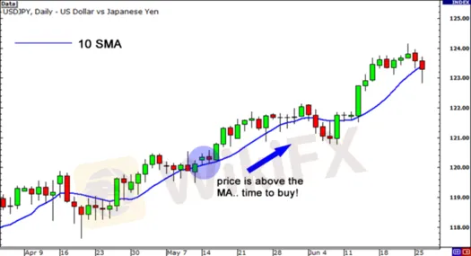 外呼交易中移动均线的作用之一是帮助交易者确定趋势方向。最简单的方式就是在图表上画一条移动均线。当价格趋于移动均线上方时,则表示价格上升趋势良好。如果价格趋于移动均线下方时,则表示价格处于下降趋势中。