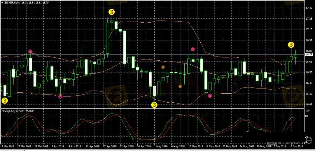 白銀日線圖,銀價BOLL通道擴張,KD金叉;四小時圖,銀價BOLL通道收窄,KD金叉;1小時圖,銀價BOLL通道擴張,KD金叉,市場短期有震盪修正。